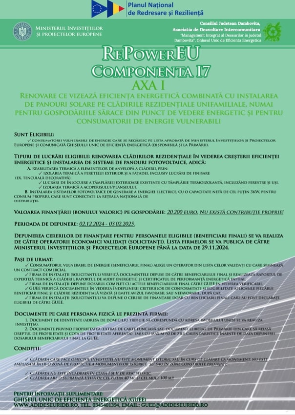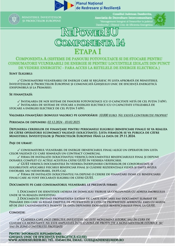 RePowerEU – Componenta I4 – Etapa 1 – Componenta A