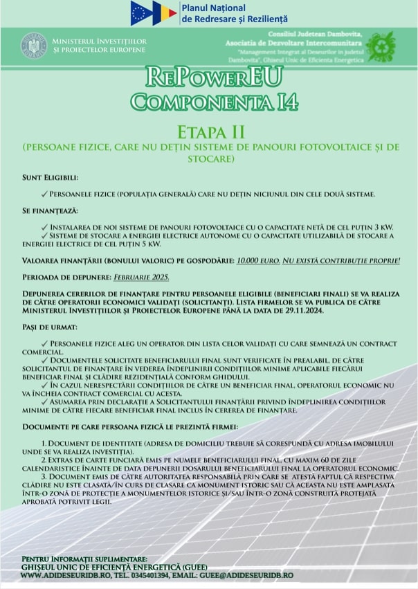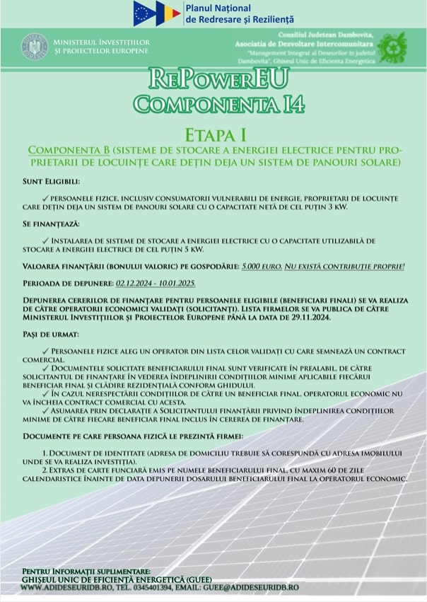 RePowerEU – Componenta I4 – Etapa 1 – Componenta B